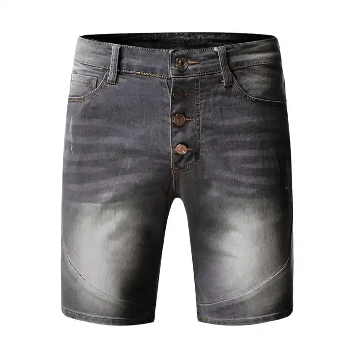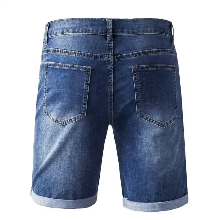 Fashion Regular Fit Straight Short Jeans Washed Denim Distressed Technics Breathable Mid Waist Casual Men 100% Cotton
