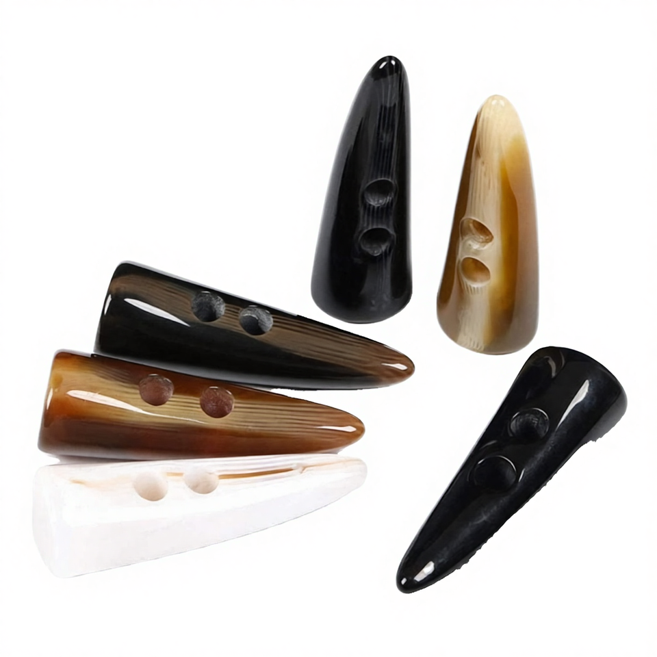 Fashion Retro Style Natural Grain Horn Washable Polishing 2-Holes Button with Beads for Overcoat or Sweater
