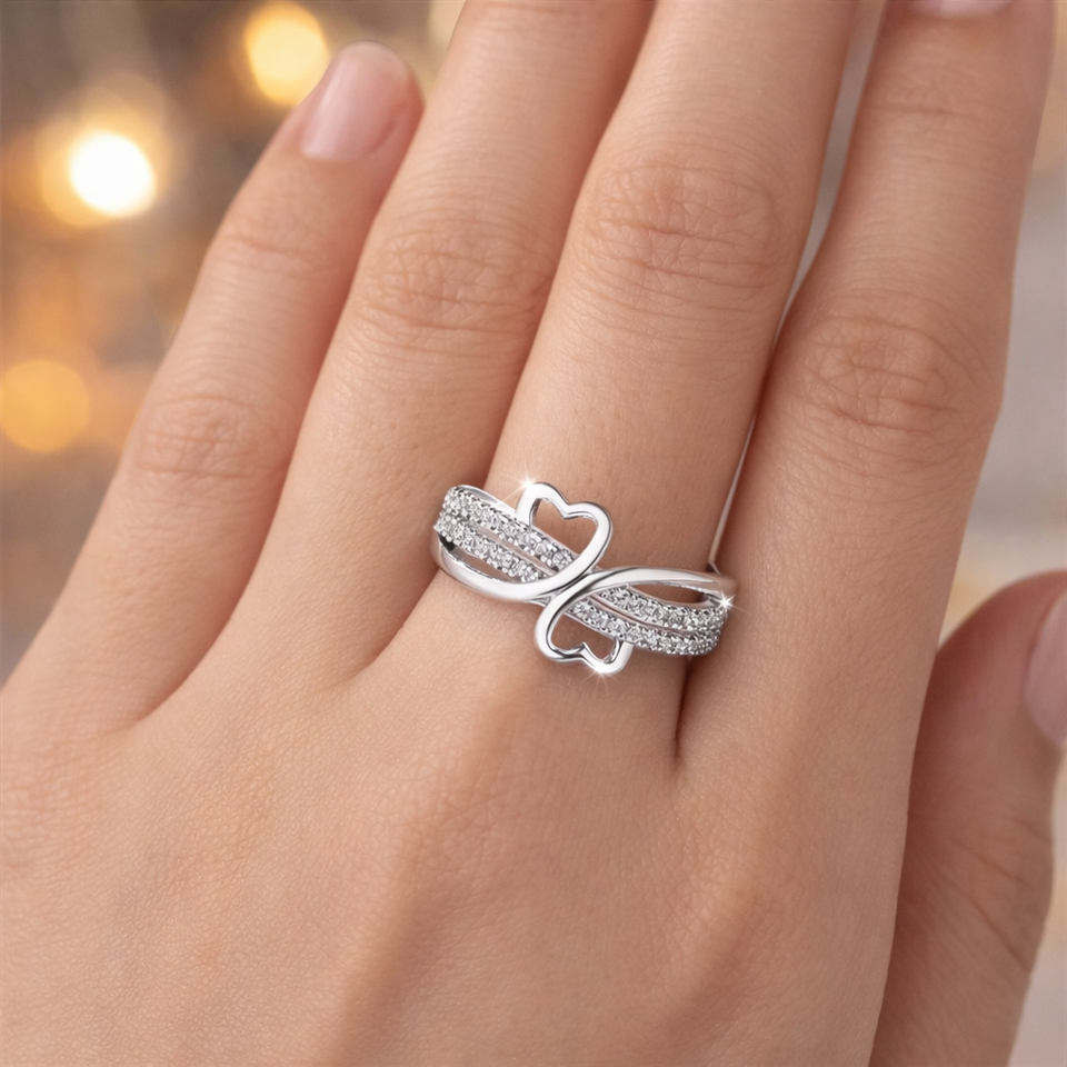 Product name:18K Yellow Gold Dual Heart Shape Wrap Eternity Band