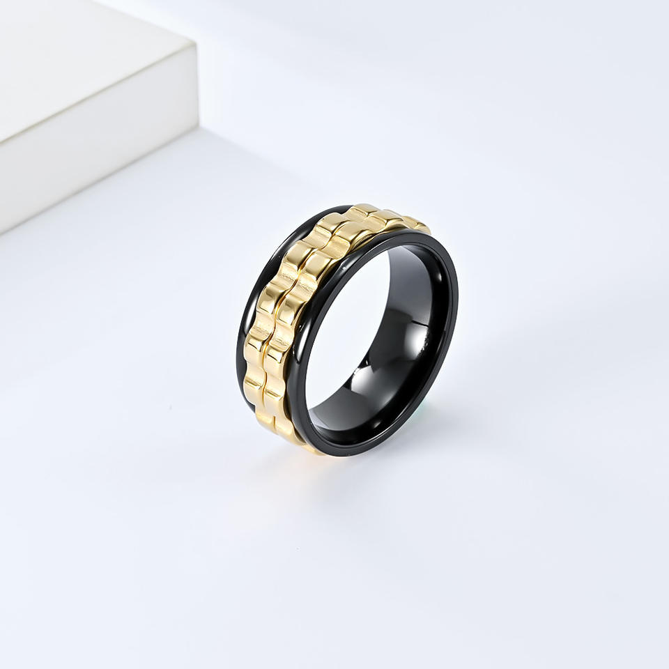 Fashion Rings Geometric Rotating Gear Titanium Steel Unisex Index Finger Ring Gift Black Silver Blue Gold Color Stainless Steel