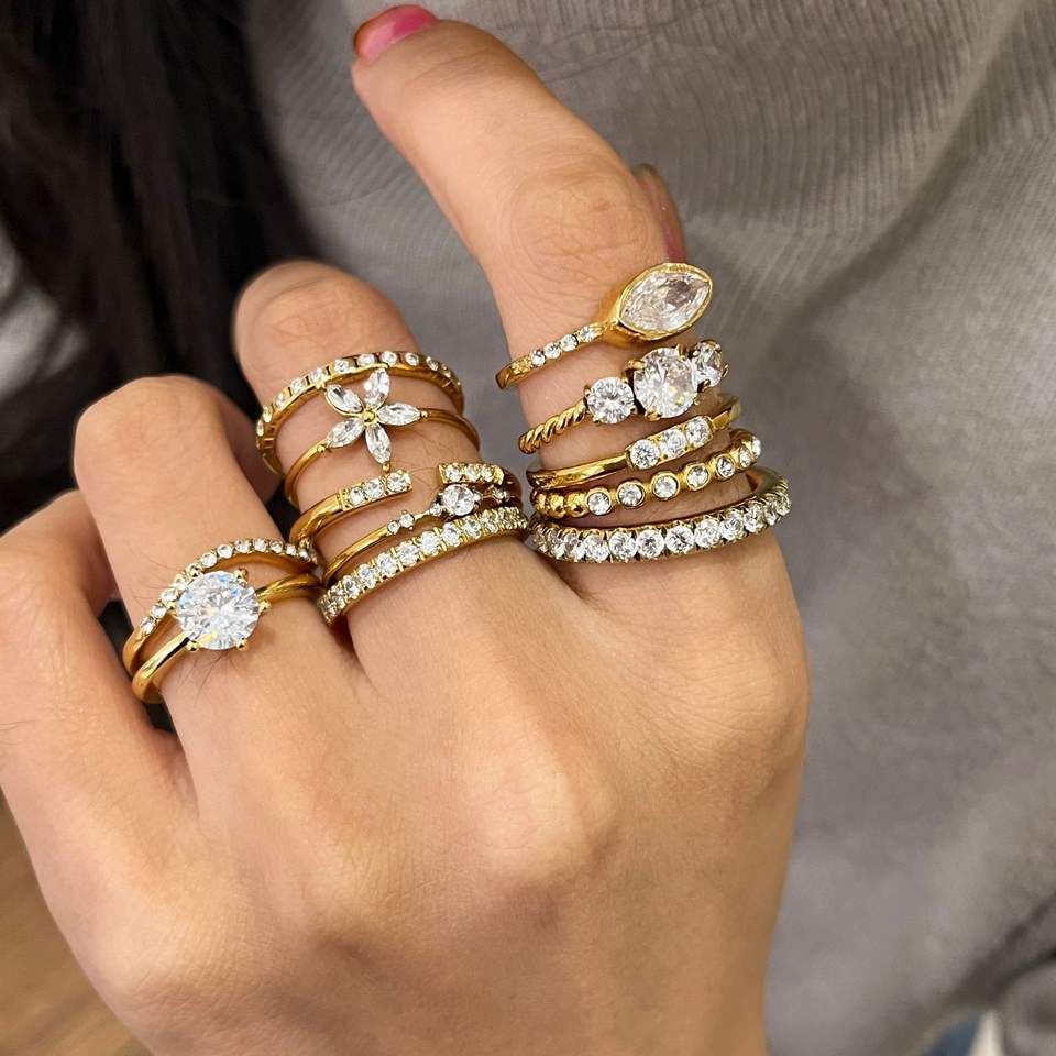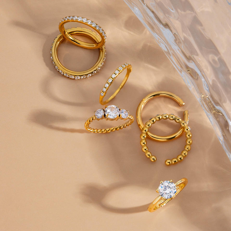 Fashion Rings Gold Tone Zircon Inlay Adjustable For Women Gift Jewelry Set