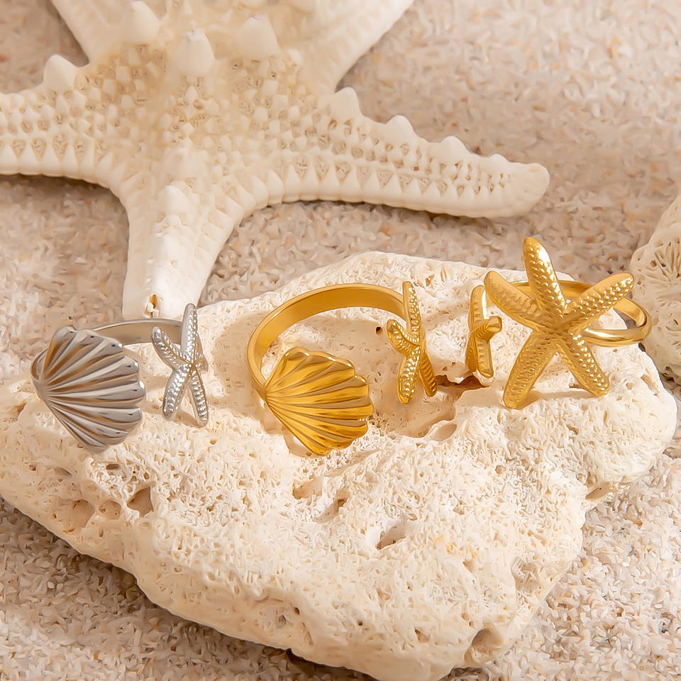 Fashion Rings Star Shell Design 18K Gold Color Women's Party Jewelry