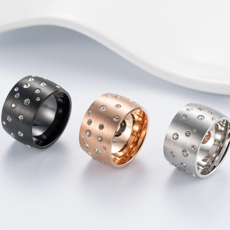 Fashion Rings Titanium Steel Rhinestone Pave Setting Unisex Gift Jewelry