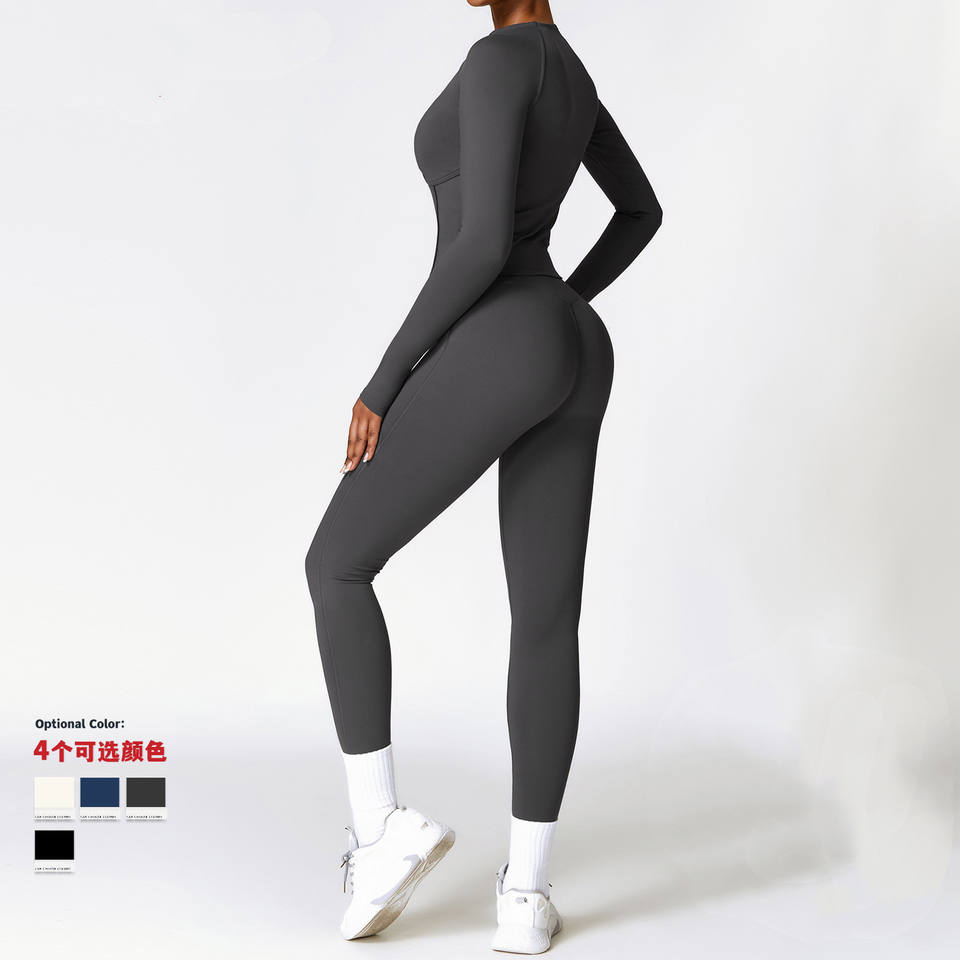 High Strength Fitness Sportswear Set Winter Warm Long Sleeve Yoga Suit with Reversible Solid Pattern Fashionable and Stylish
