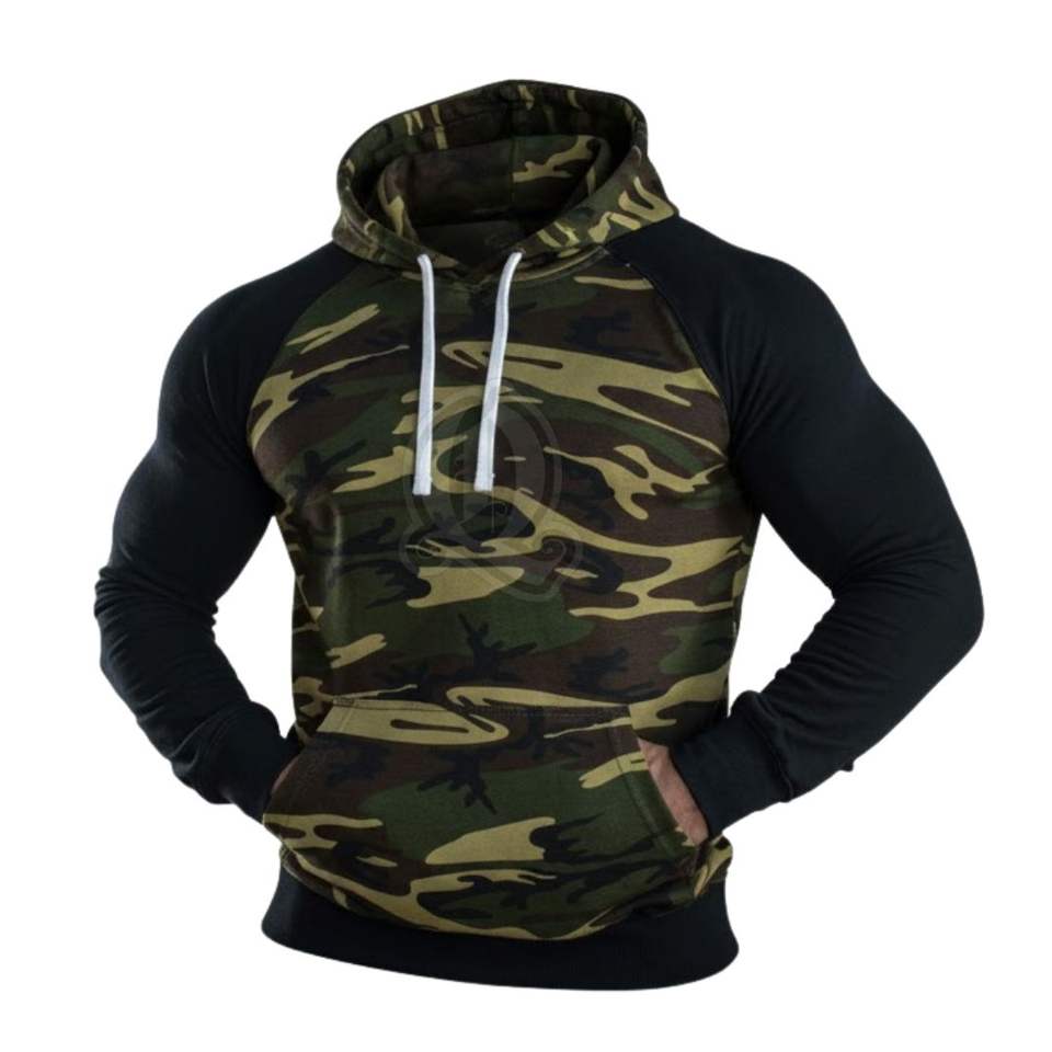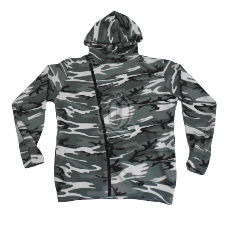 Fashion Side Zipper Camouflage Hoodie Unique Diagonal Zip Design Mens Fitted Gym Sweatshirt Streetwear Pullover