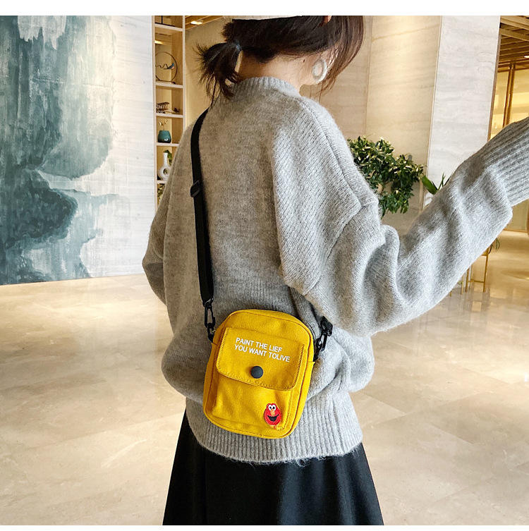 Fashion Single Shoulder Bag for Student Casual Canvas Handbag Outdoor Phone Messenger Bag Zipper Crossbody Bag Purse for Girls