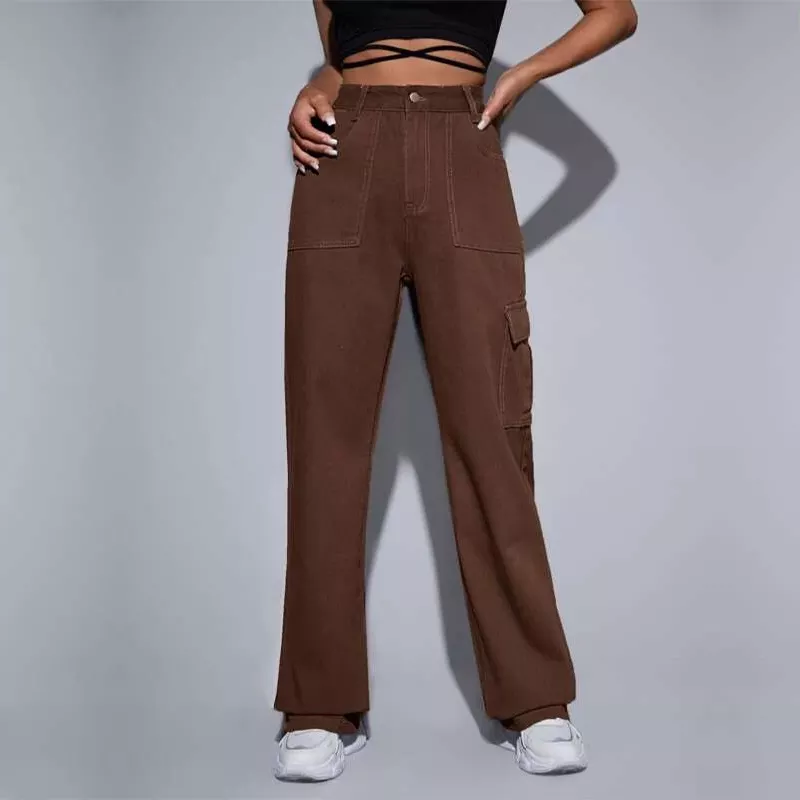 Fashion Single Side Pockets High Waist Boy Friend Straight Legging Women Denim Pants