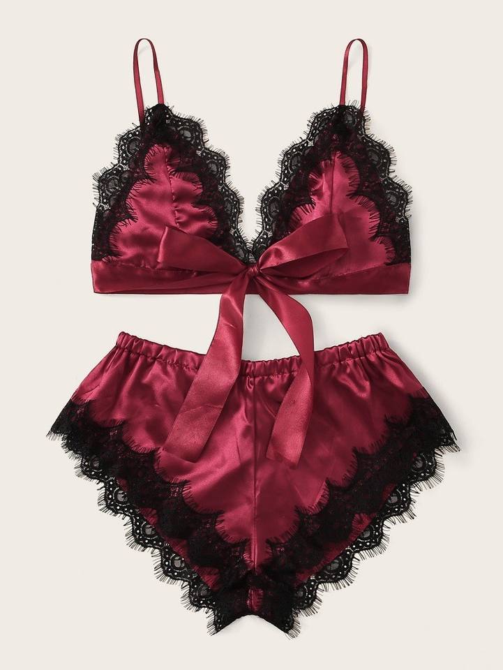 Fashion Sleeveless Satin Pajama Set Lace Sexy V-Neck Sleepwear Cute Bow Women's Underwear Suits Spring Summer Smooth