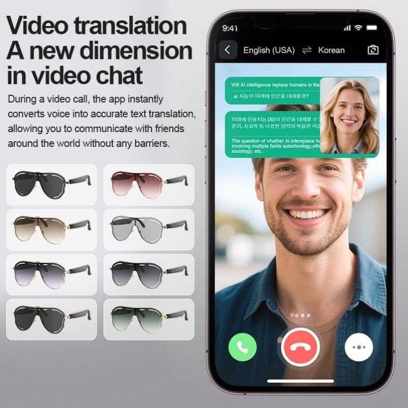 Fashion Smart Sunglasses AI Translation for Bluetooth Wireless Speaker Anti-Blue Feature Outdoor Sports Wearable Headset Glasses