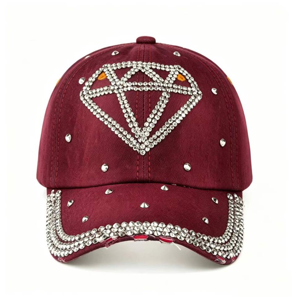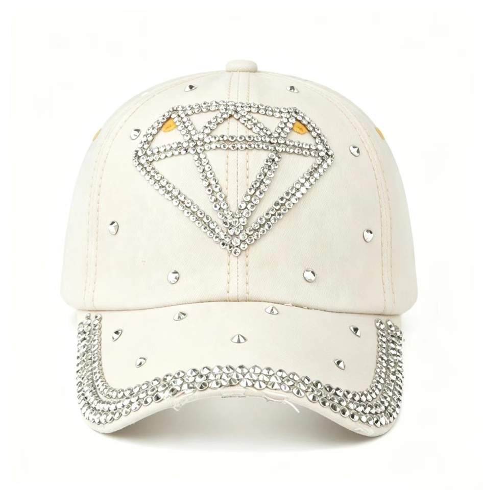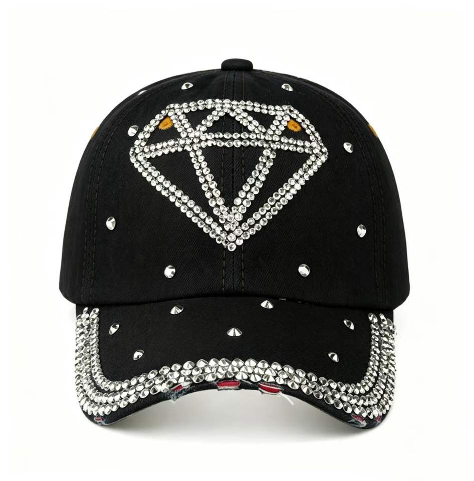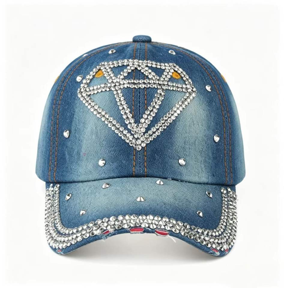 Fashion Sparkly Rhinestone Diamond Denim Baseball Cap Distressed Studded Washed Cotton Jean Hat Outdoor Sun Protection
