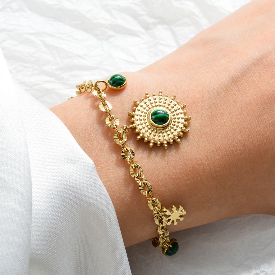 Fashion Stainless Steel Cuff Bracelets Hippie Sunflower Calaite Design 14K Gold Plated Zircon Stones for Women