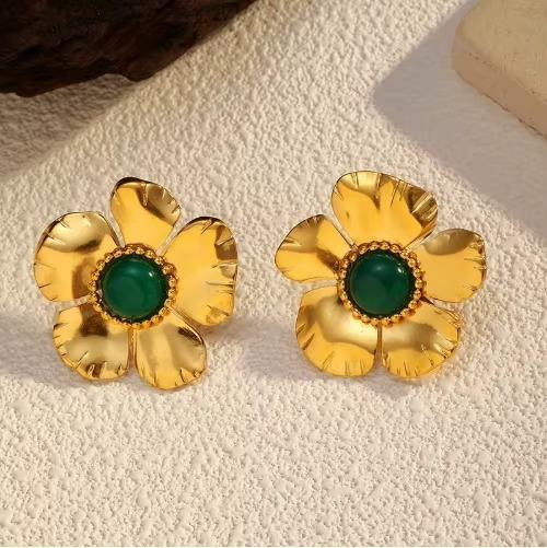 Fashion Stainless Steel Vintage Elegant Earring Set Irregular Flower Texture Ear Clips