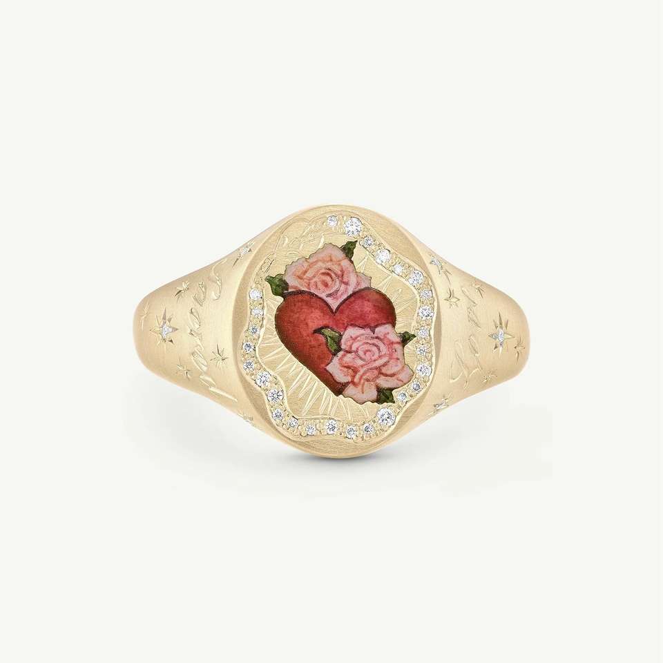 Fashion Stamp Stainless Steel Ring 18K Gold Hand Painted Butterfly Heart Rabbit Floral Dainty Stackable Ring Jewelry for Women