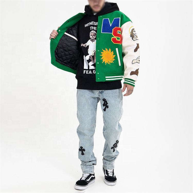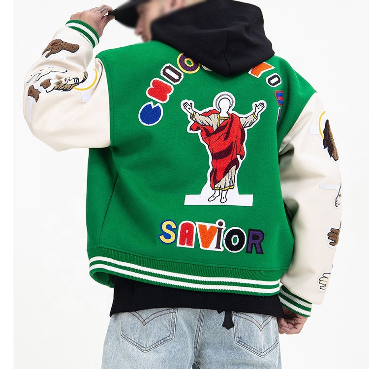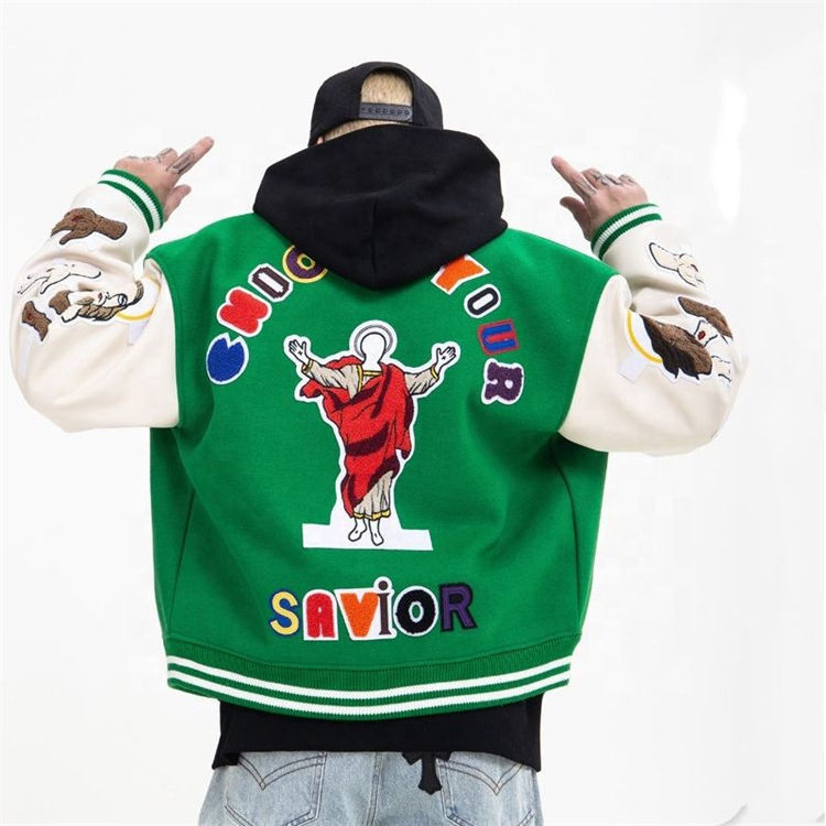 Fashion Streetwear Green Varsity Mens Jackets Letterman College Style Bomber Jacket for Men Casual Embroidery Baseball Coat
