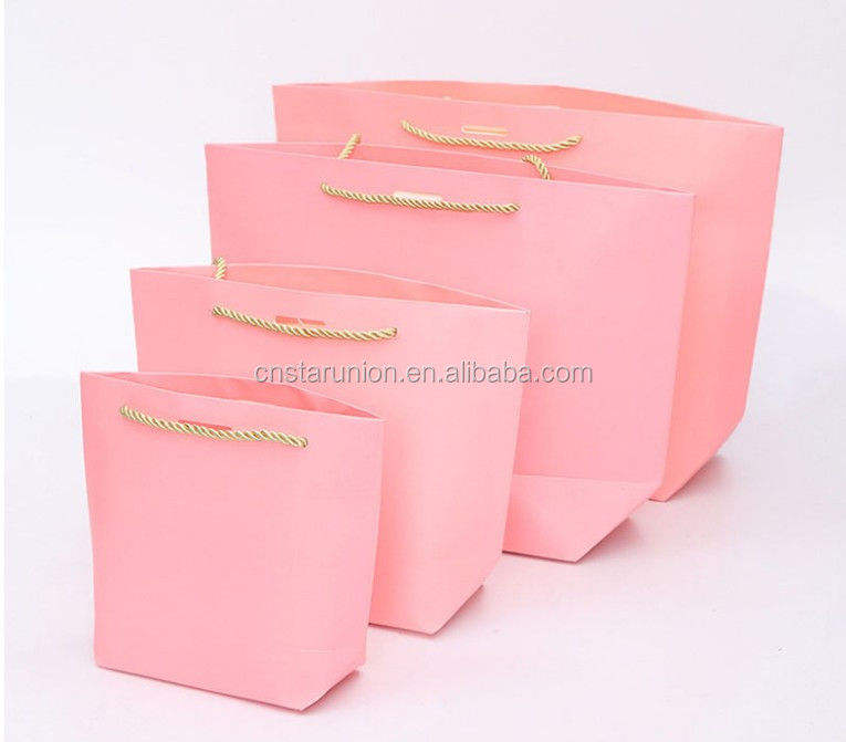 Fashion Style Custom Pink Glossy Lamination Gift Candy Shopping Paper Bag with Ribbon Handle Hot Sale Packaging Product