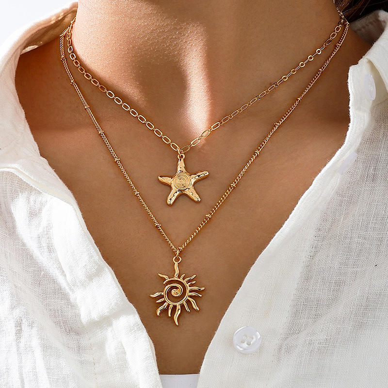 Fashion Summer New Alloy Star Sun Stacked Sunflower Women's Necklace