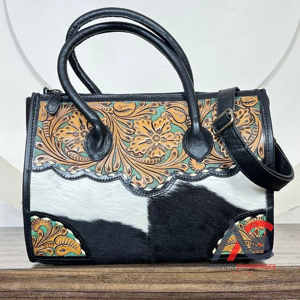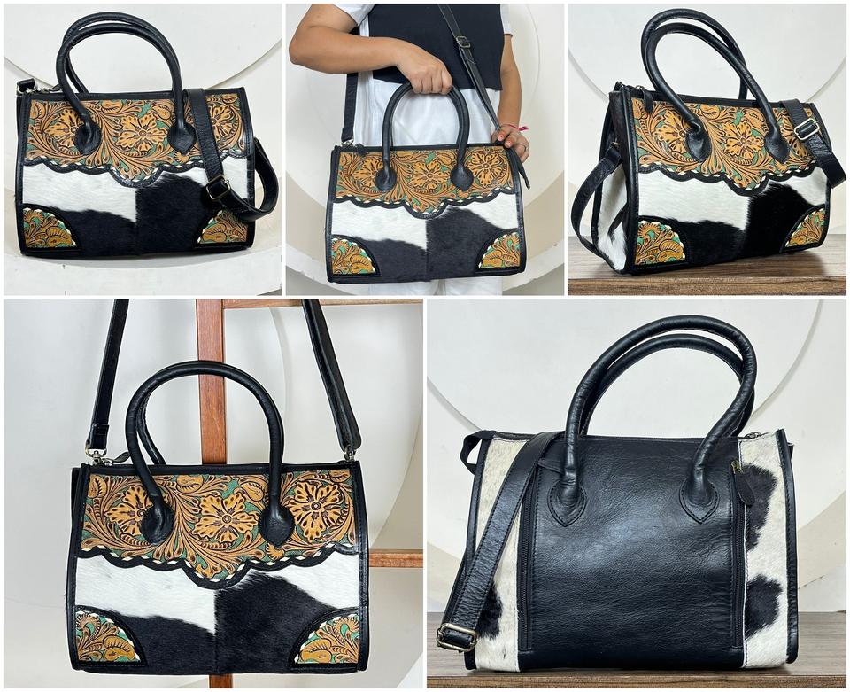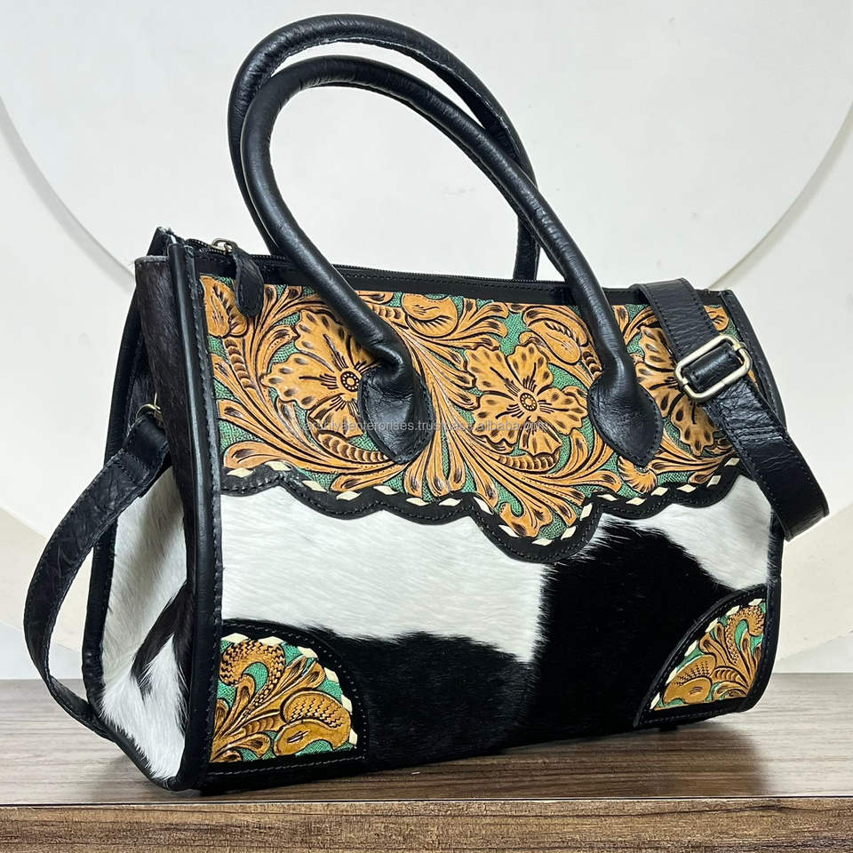 Fashion Tote Bags for Women's Hand Tooled Cowhide Leather Western Large Capacity Shoulder Handbag Genuine Leather Ladies Purse