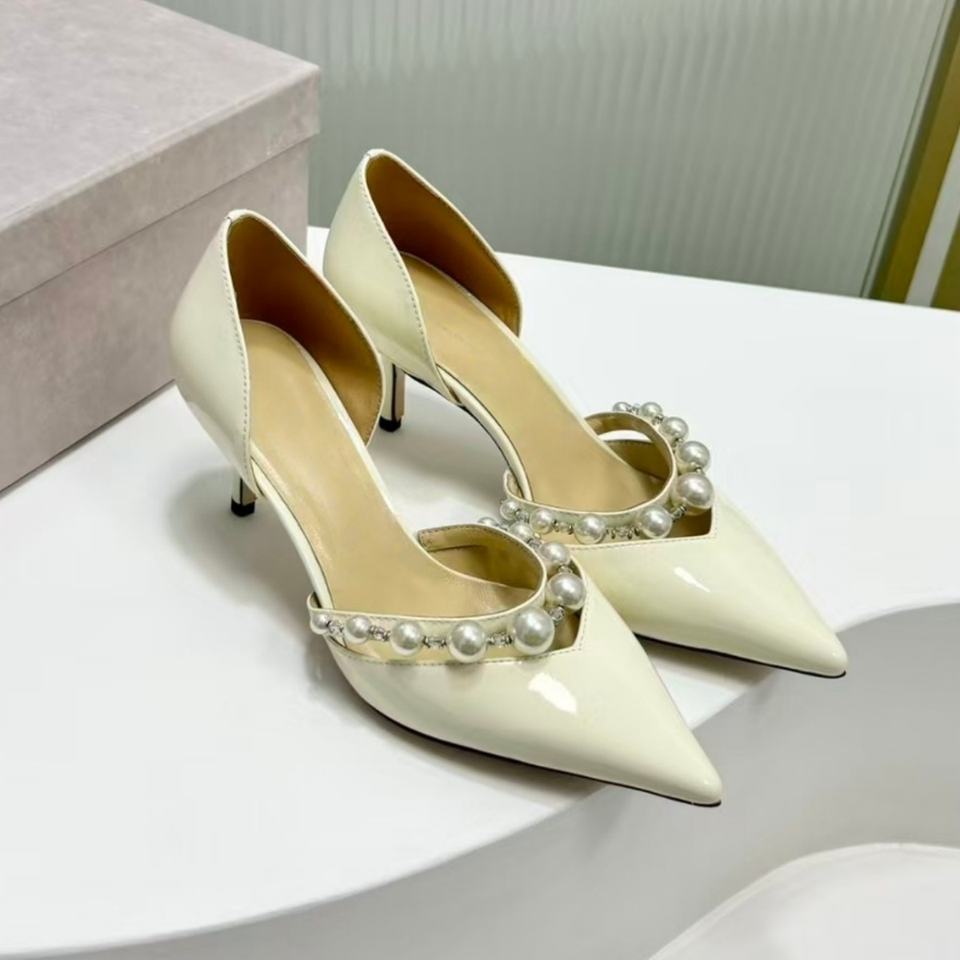 Fashion Trend Breathable Elegant White Bridal Ankle Strap High Heels Pumps Pointed Toe Women Comfortable Heel Wedding Summer