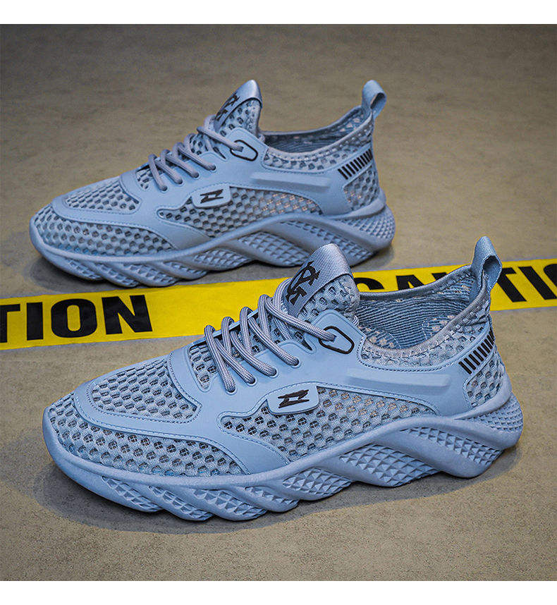 Fashion Trend Lace-Up Breathable Mesh Mens Shoes Lightweight Open Weave Anti-Slippery Hard-Wearing Evergreen All Seasons Walking