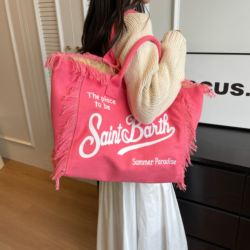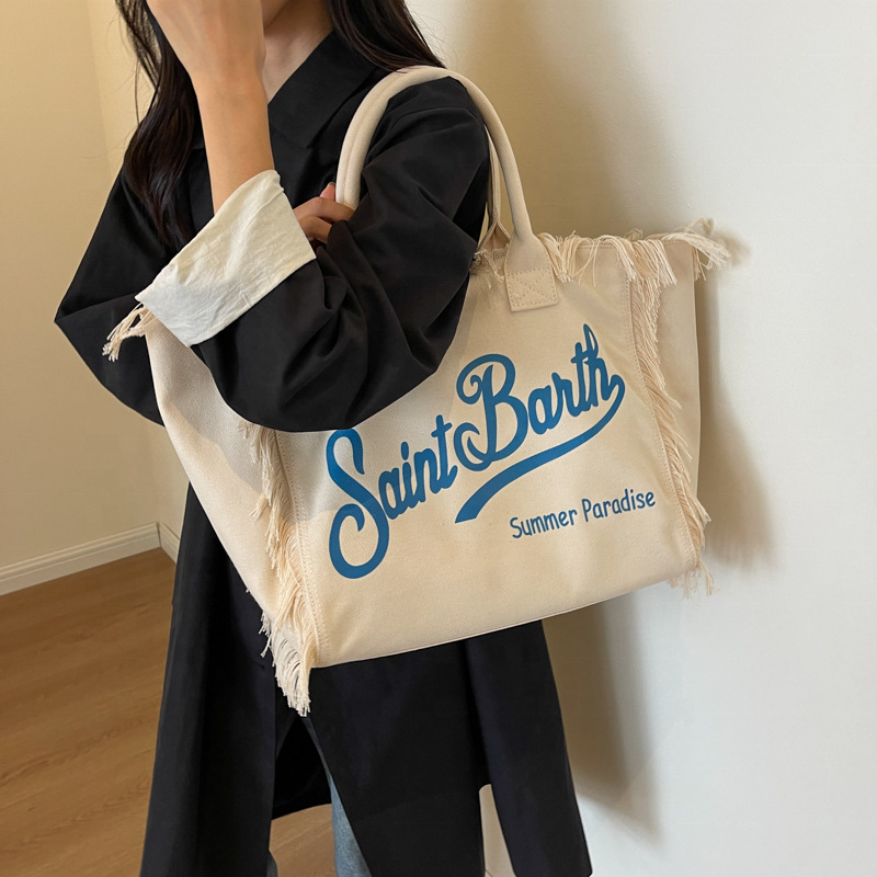 Fashion Trend Women Large Capacity Casual Travel Striped Handmade Tassel Handbag Light Luxury Canvas Totes