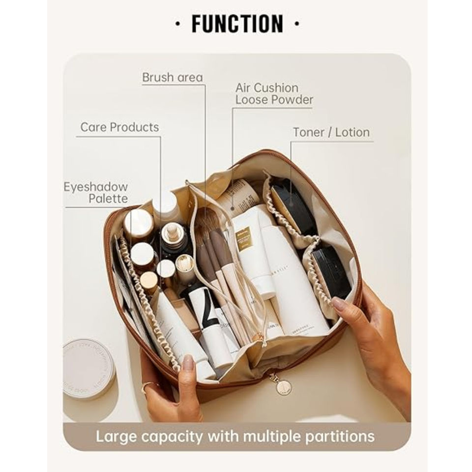 Fashion Trending Genuine Leather Travel Makeup Bag Large Capacity Cosmetic Bags for Women
