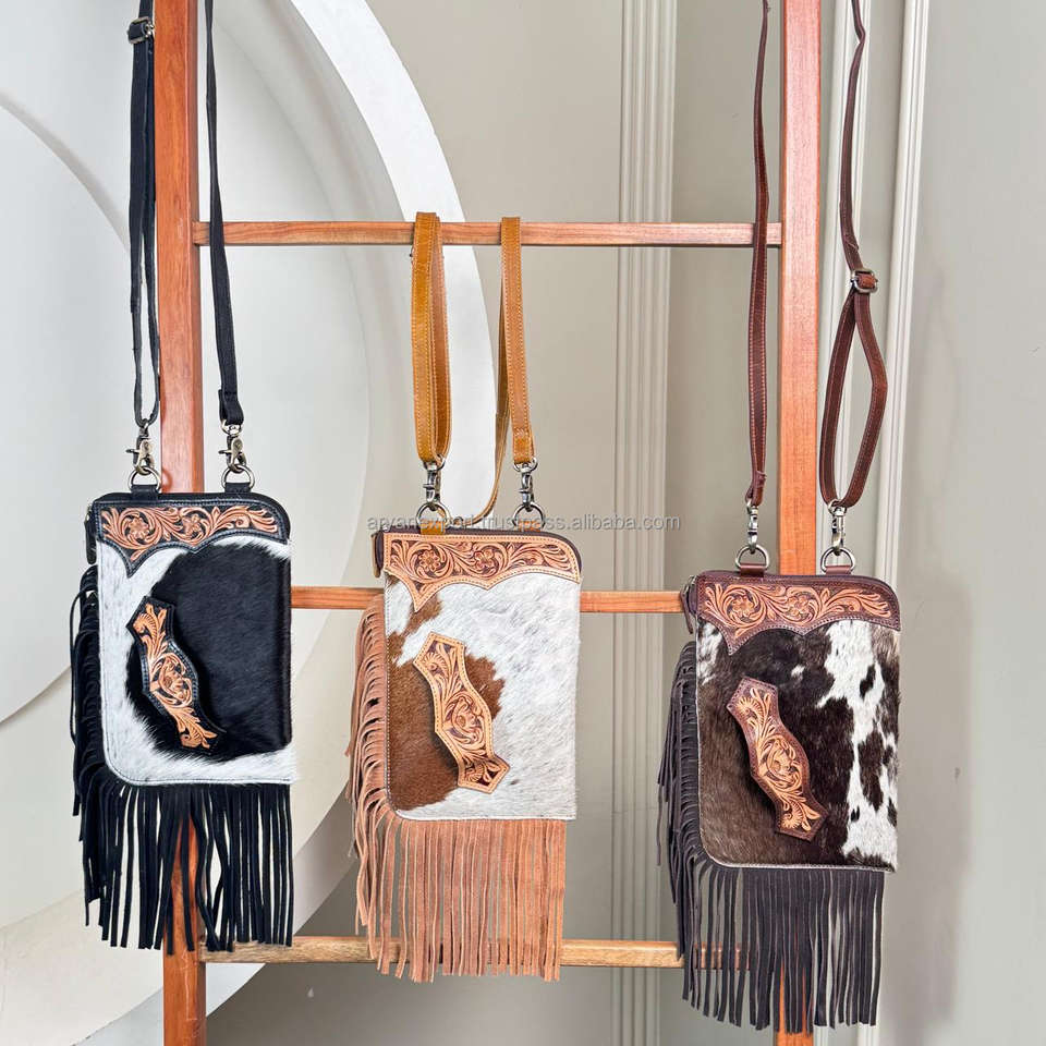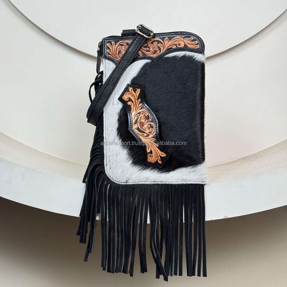 Product name:Hand Tooled Fringe Cowhide Leather Crossbody Messenger Bag