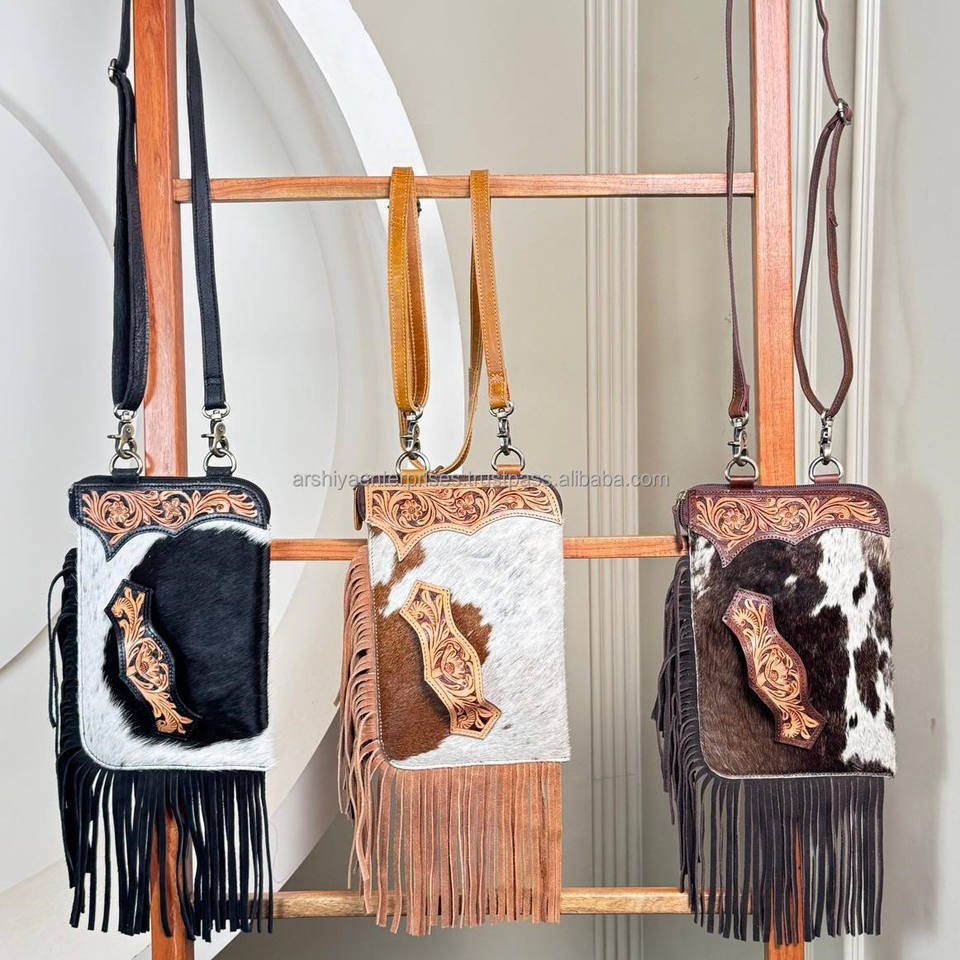 Product name:Hand Tooled Fringe Cowhide Leather Crossbody Messenger Bag