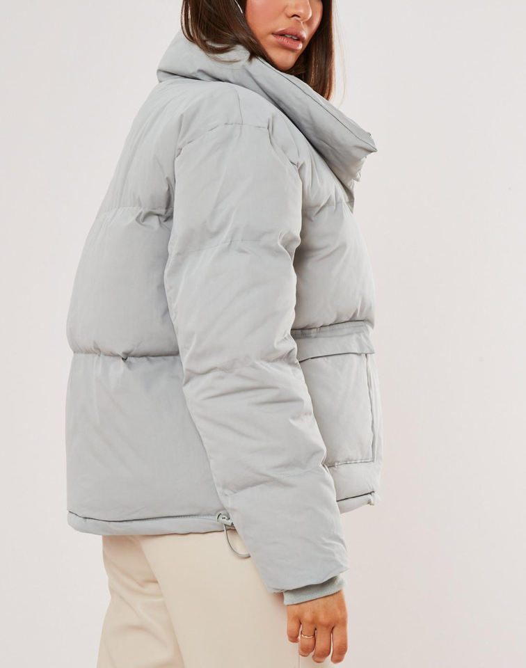 Fashion Turn Down Collar Design Cropped Winter Streetwear Puffer Thick Down Jacket for Women
