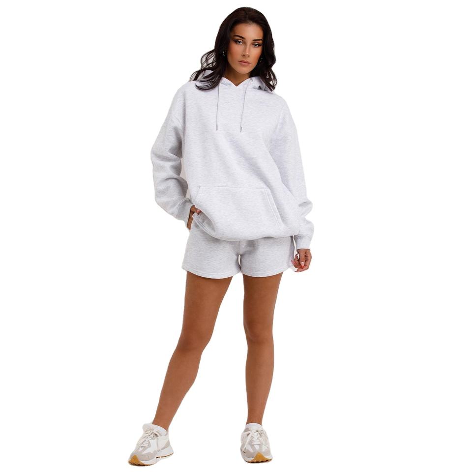Fashion Urban Women Hoodie and Shorts Set Fleece Oversized Casual Pullover OEM Private Label Hoodie Shorts for Women
