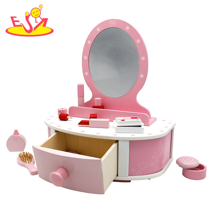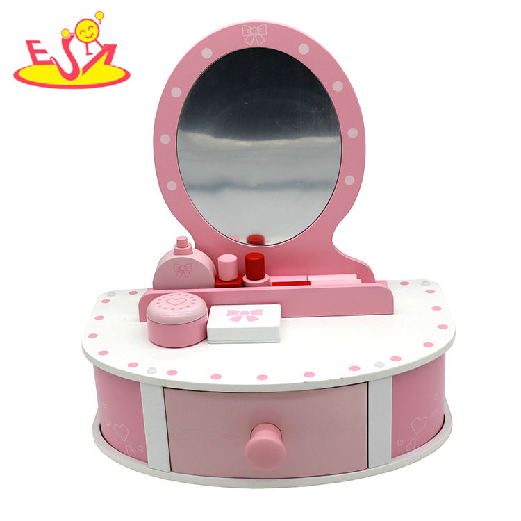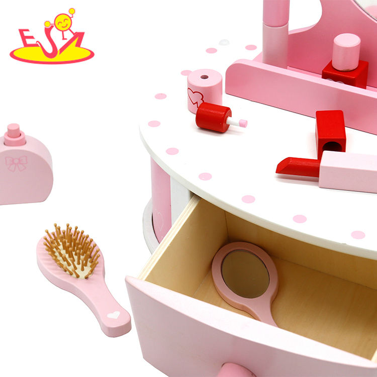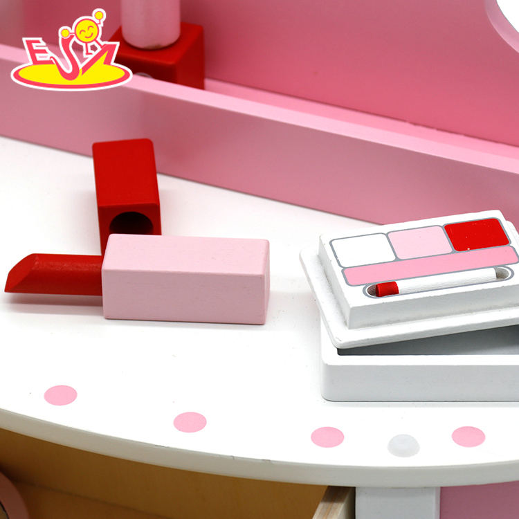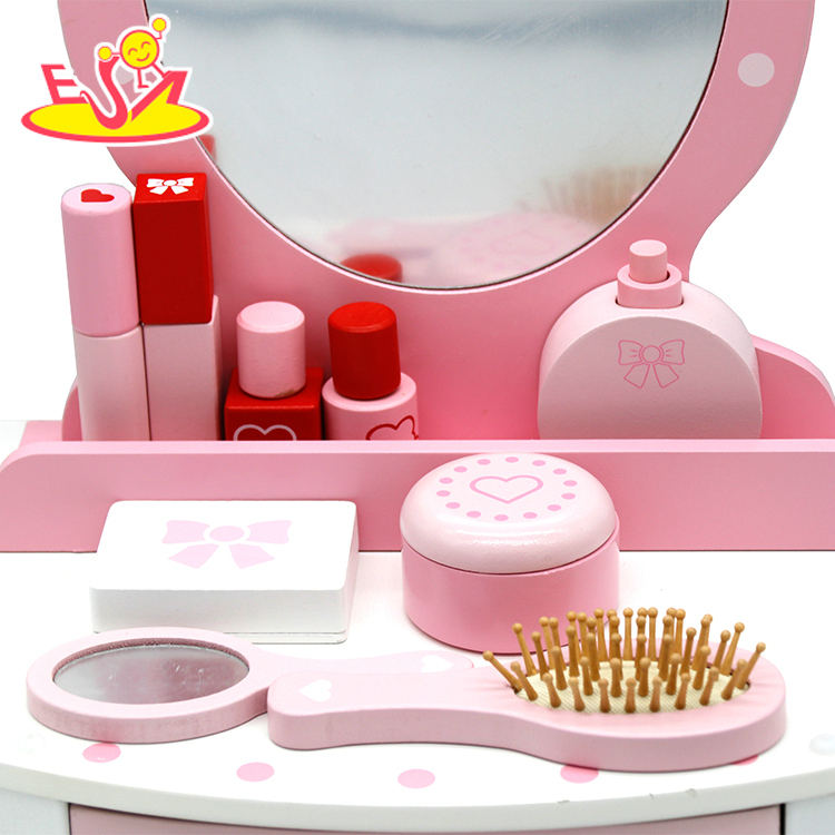 Fashion Vanity Set with Pretend Makeup Toy Wooden Dressing Table with Accessories in pink for Little Kids and Toddlers W08H183