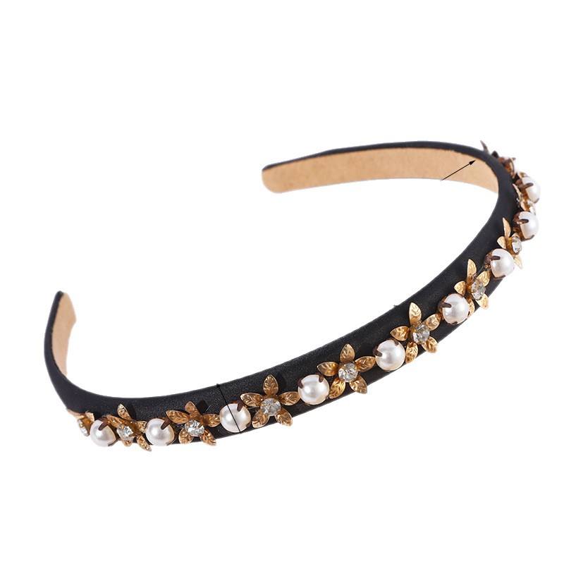 Fashion Vintage Baroque Pearl Hair Hoop Bling Multi Color Flower Crystal Rhinestone Headband for Party Wedding