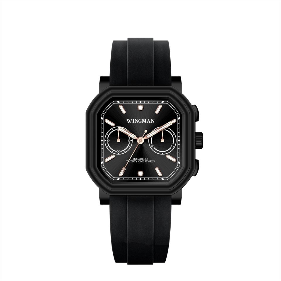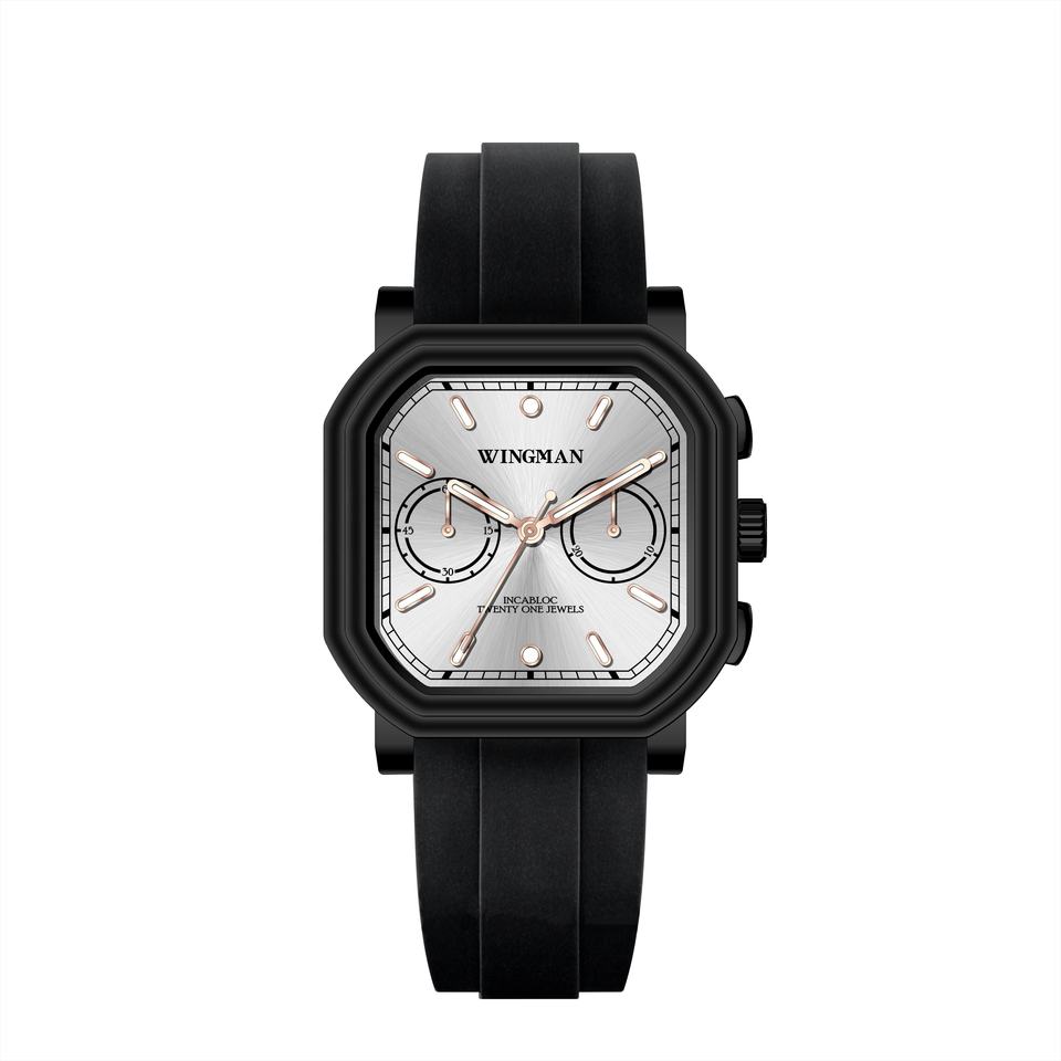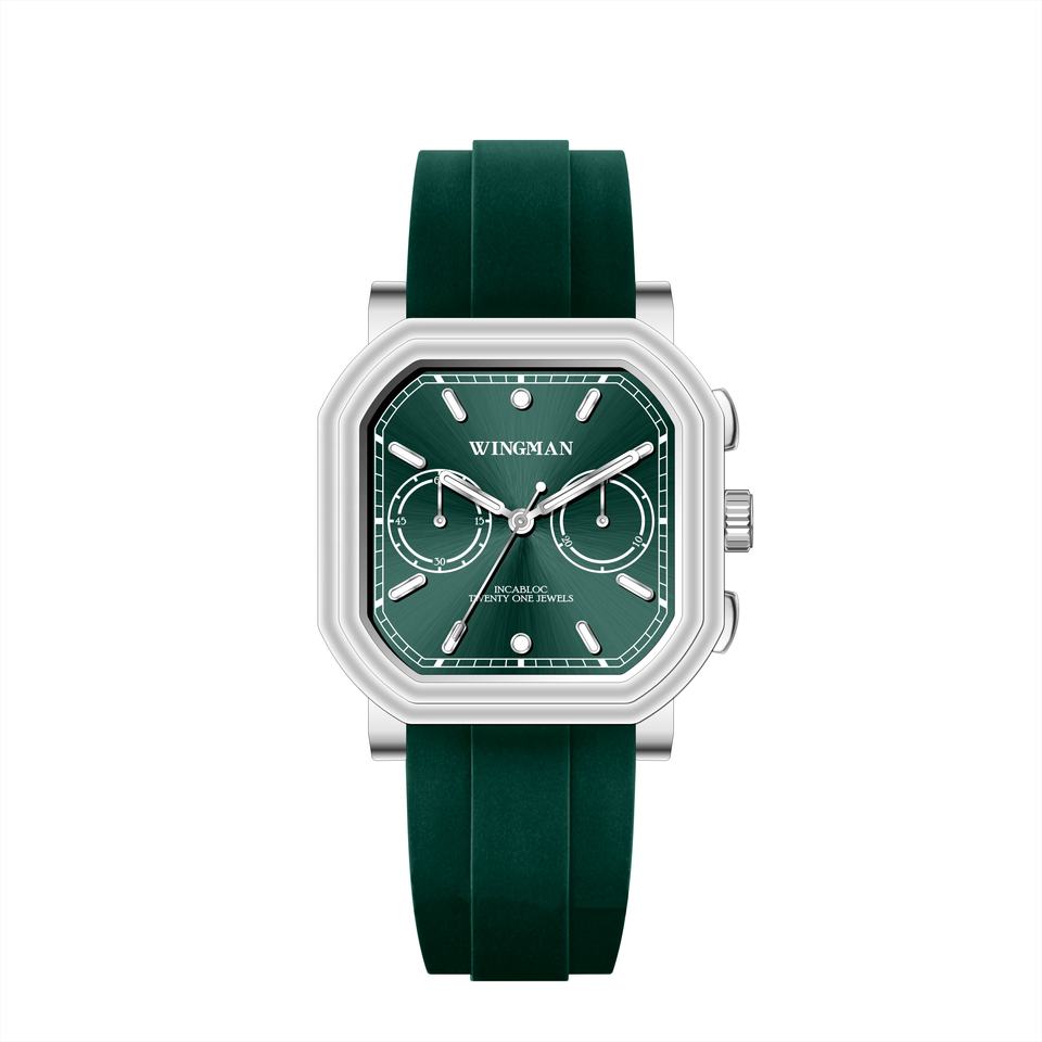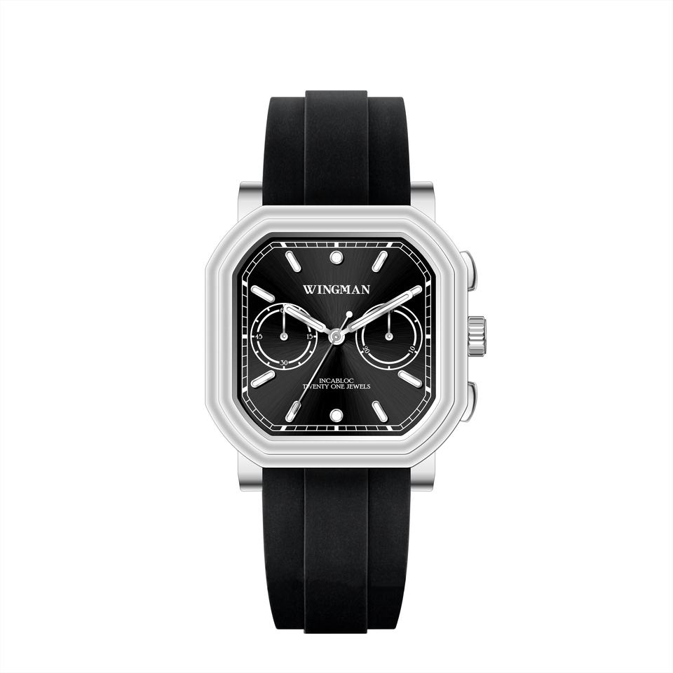 Fashion Watch Men's Silicone Rubber Strap with Seagull ST1901 Movement Big Square Dial Waterproof Automatic Mechanical Watch