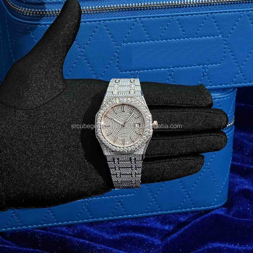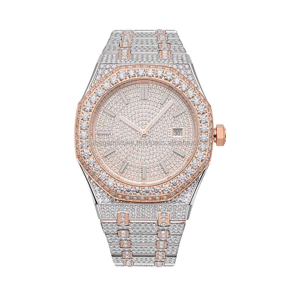 Fashion Watches Men's Rose Gold Cvd Diamonds New Luxury Classic Designer Stainless Steel Band for Men Watch