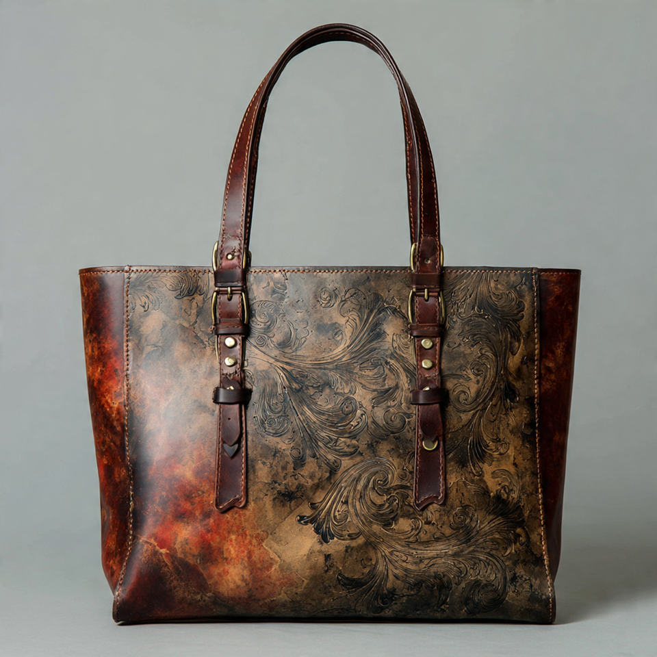 Fashion Wear Vintage Lady Genuine Leather Sublimation Tote Bag Women Streetwear Casual Shoulder Handbags
