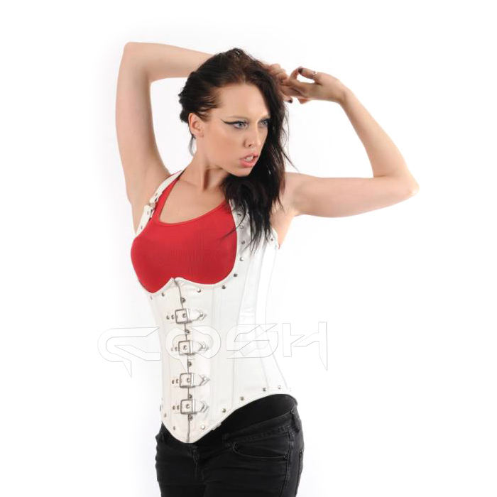 Fashion Wear White Leather Halter Corset