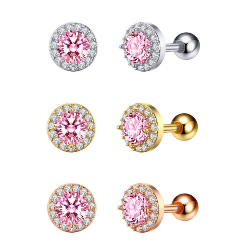 Fashion Wholesale 14K Gold Stainless Steel Jewelry Piercing Micro Insert Colorful Zircon Stud Earring