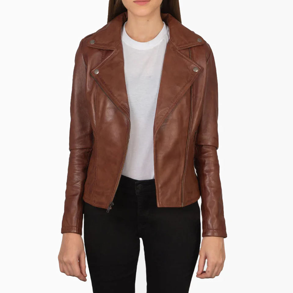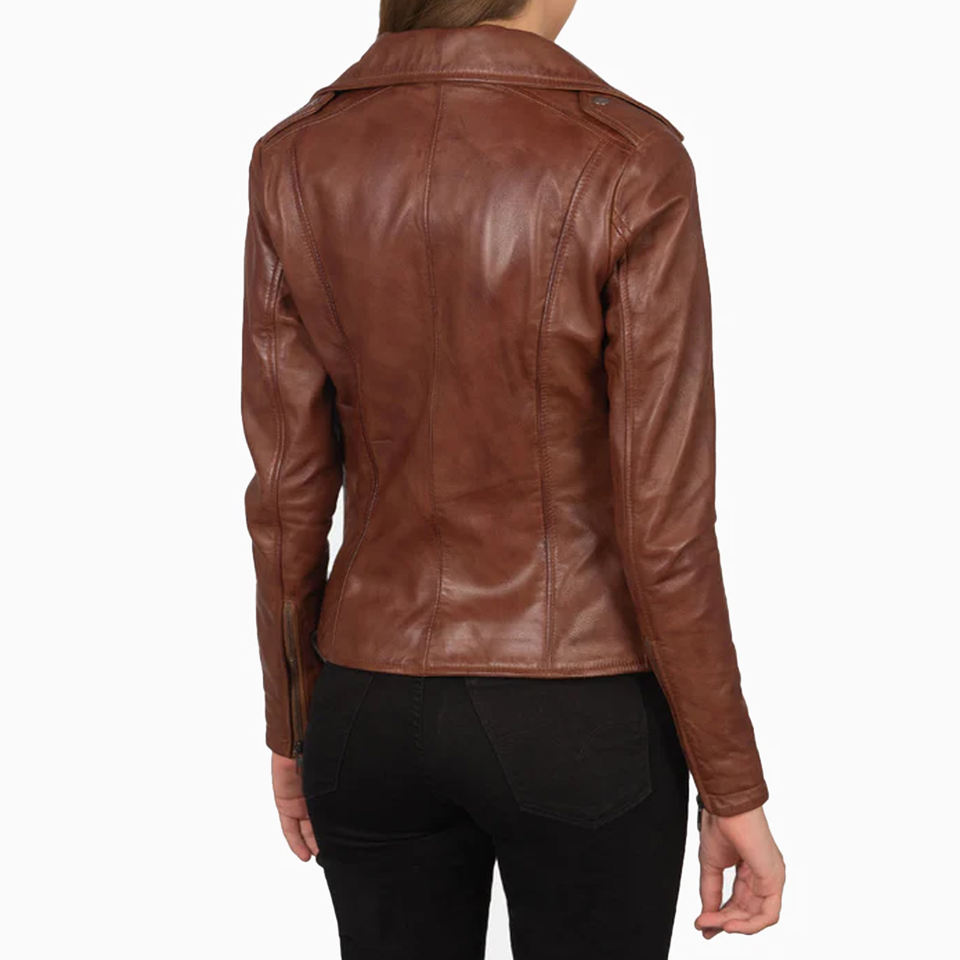 Fashion Women Brown Genuine Leather Jacket | Custom Slim Fit Biker Outerwear | OEM ODM Wholesale Supplier Factory