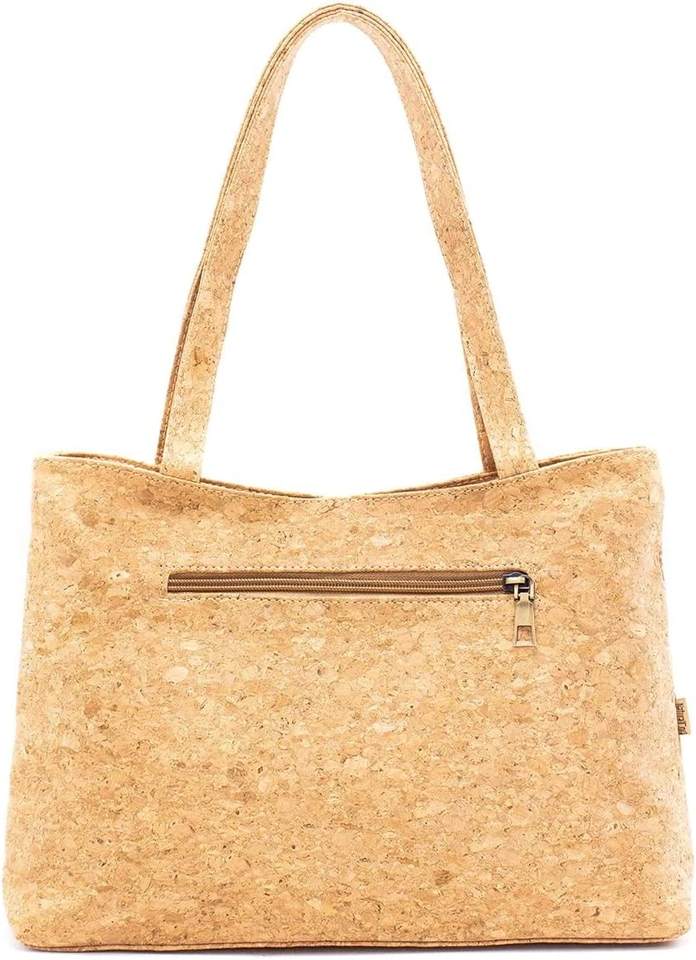Handmade Fashion Women's Vegan Cork Tote Shoulder Bag Foldable Laundry Bag with Zipper Closure for Shopping Clothes Storage
