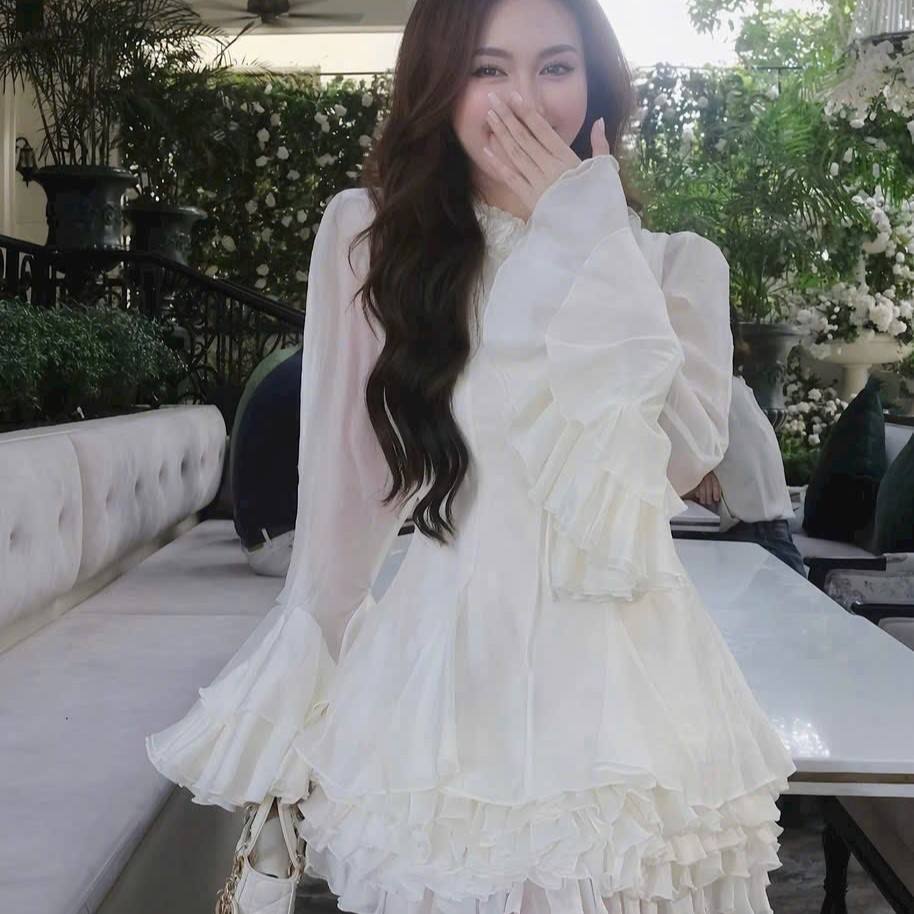 Fashion Women Solid White Chiffon Layered Ruffle Blouse Shirt