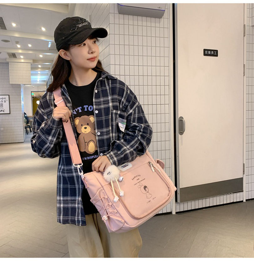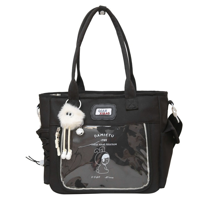 Fashion Women Student Tote Bags Handbag Clear PVC Window Pins Display Canvas Ita Bags Crossbody Bag