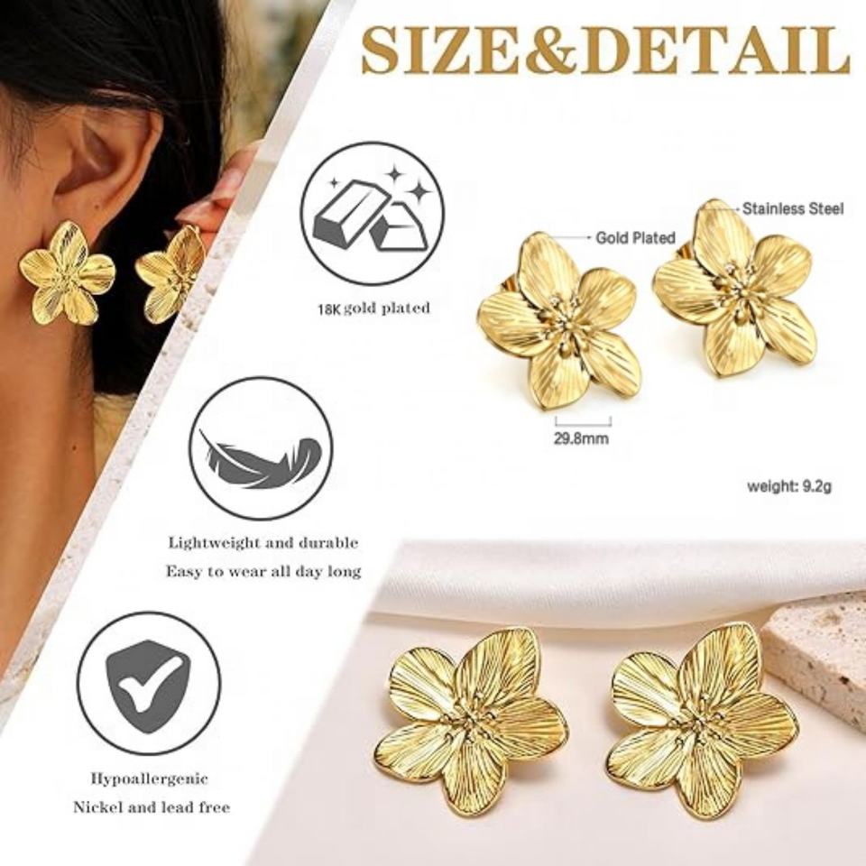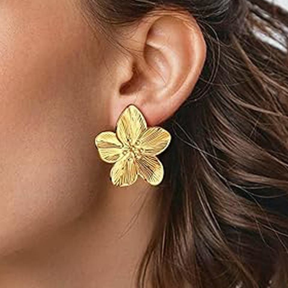 Fashion Women's 18k Gold Plated Trendy Jewelry Hypoallergenic Statement Floral Stud Earrings Stainless Steel Flower Earrings