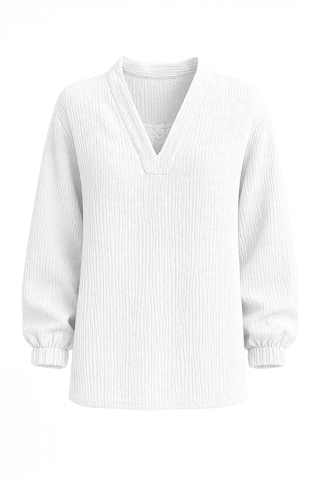 Fashion Women's Cozy Waffle Knit Rib Knee Tunic Top Soft Breathable Long Sleeve V-Neck Casual Pullover OEM/ODM Manufacturing