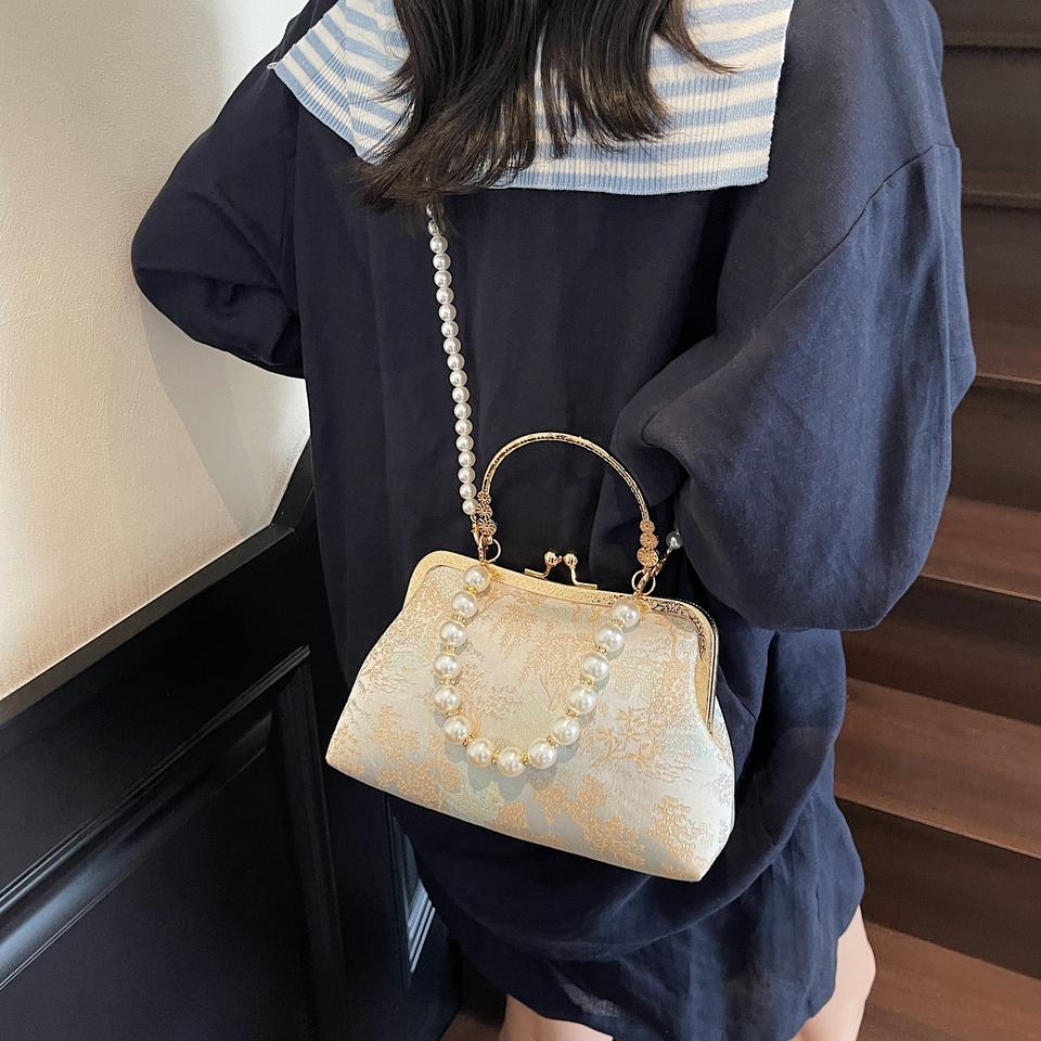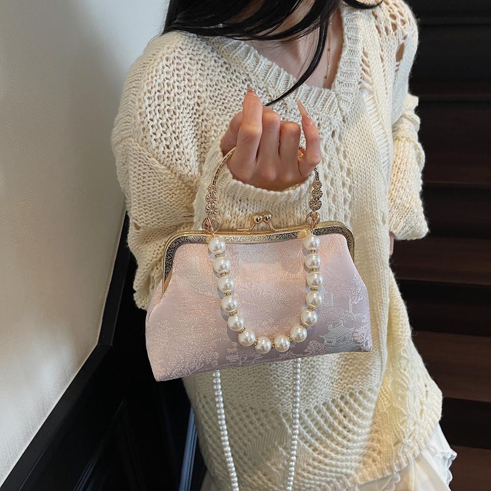 Product name:Pearl Embroidered Crossbody Purse with Vintage Clutch