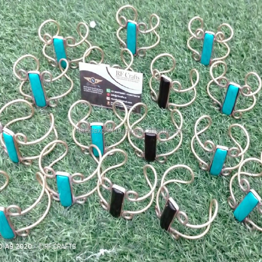 Handmade Adjustable Gold-Plated Sterling Silver Cuff Bracelet Customizable Fashion Stone Bangles