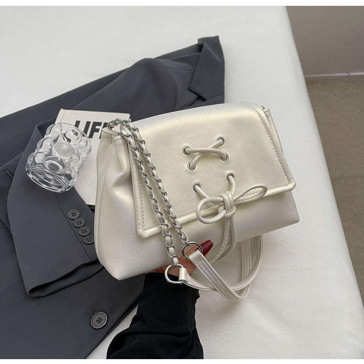 Fashion bow pleated women's shoulder bag square crossbody bag solid color sweet girl