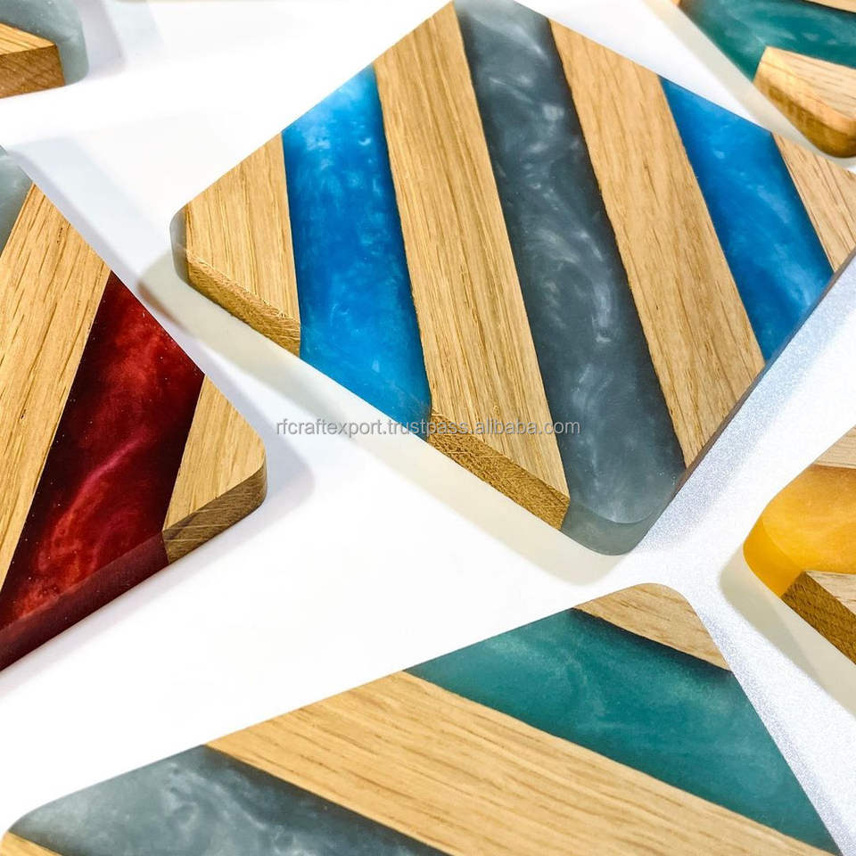 Creative Fashion Pine Wood Resin Saucer Luxury Cup Coaster and Coffee Table Cup Holder with Tea Cup Mug Mat & Pads