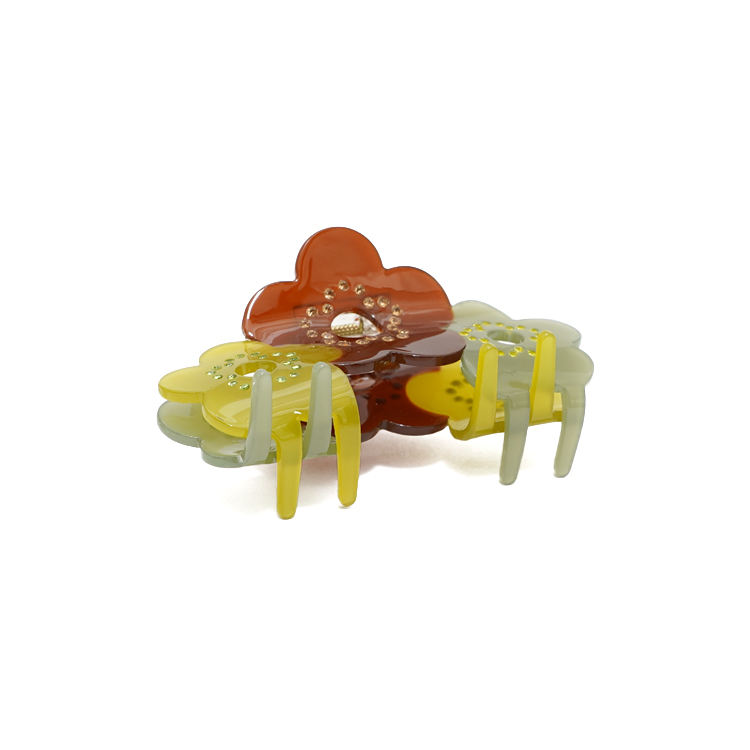 Fashion green hollow flower custom hair claw embed steel ball acetate claw clip high quality personalized wholesale hair clip