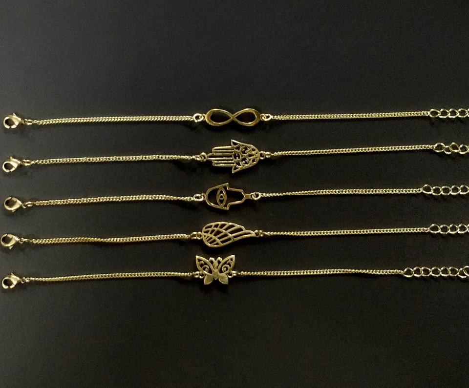 Adjustable Silver/Gold Color High Polish Brass Metal Butterfly Charm Chain Fashionable Bracelet