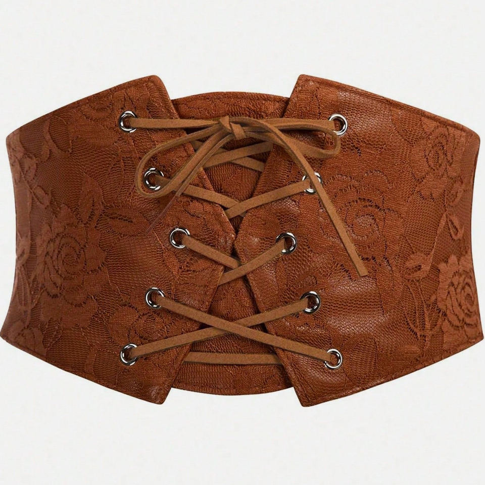 Fashion leather corset Wide Lace Brown Waist Belt for women body shaping waist cincher tummy control slimming belt compression