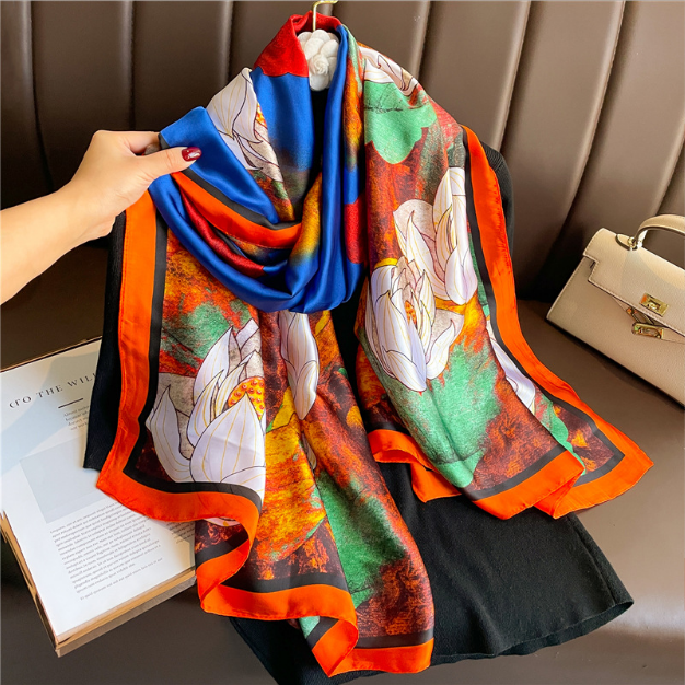 Fashion printed silk high-end ladies large square scarf summer seaside vacation beach sunscreen silk scarf
